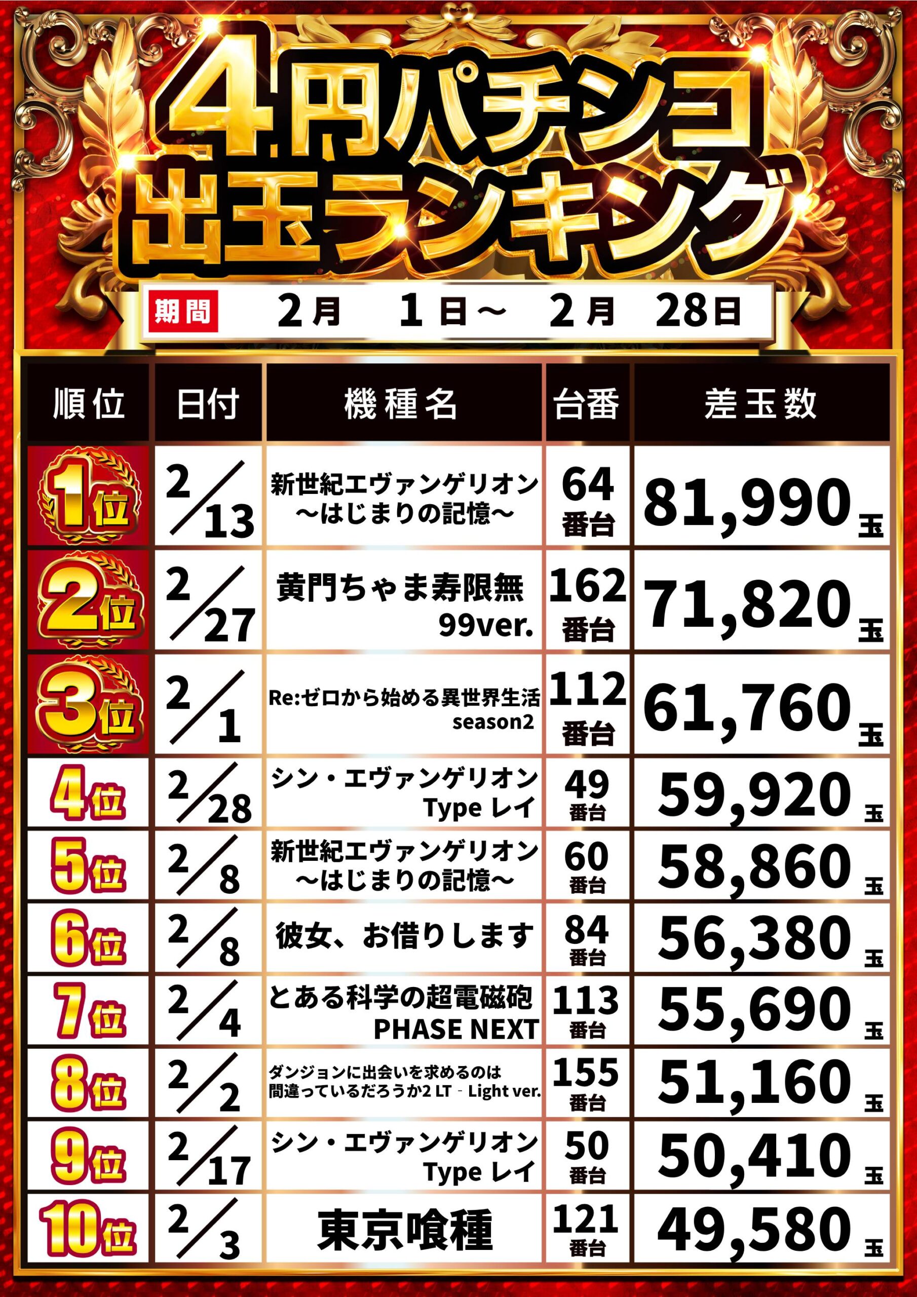 店舗情報 住所 〒333-0815 埼玉県川口市北原台2丁目9-31 電話番号 048-297-5757 営業時間 10:00 ~ 22:45 台数 パチンコ:304台 / スロット:212台 駐車場 215 台 店内環境 喫煙スペース / 加熱式たばこ喫煙遊技エリア / 休憩スペース / 飲食スペース / 駐輪場 / 駐車場 / 手荷物ロッカー